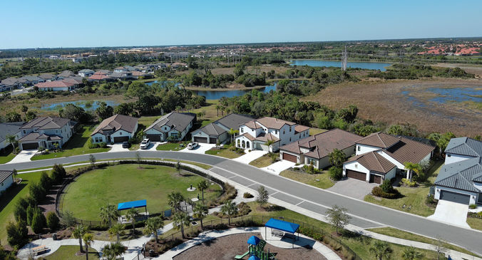 Cielo is gated, and is similar to sister community Windwood, which means no community pool or club house. The amenities list is similar to another Neal Community, Central Park in Lakewood Ranch (click here to visit that page and view video). There is a playground, dog park, and open grassy area.